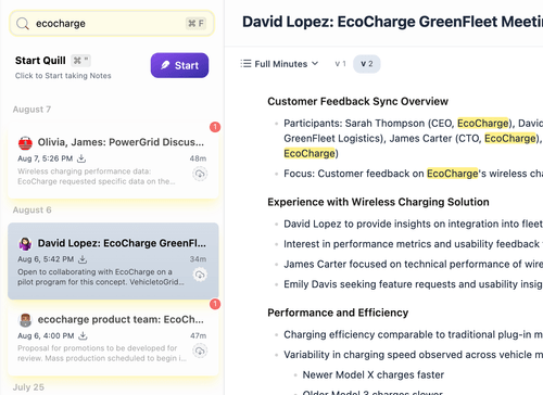 Quill's meeting notes are good. Like, really good. With one press of a button, get better notes than you normally write yourself. Try it.